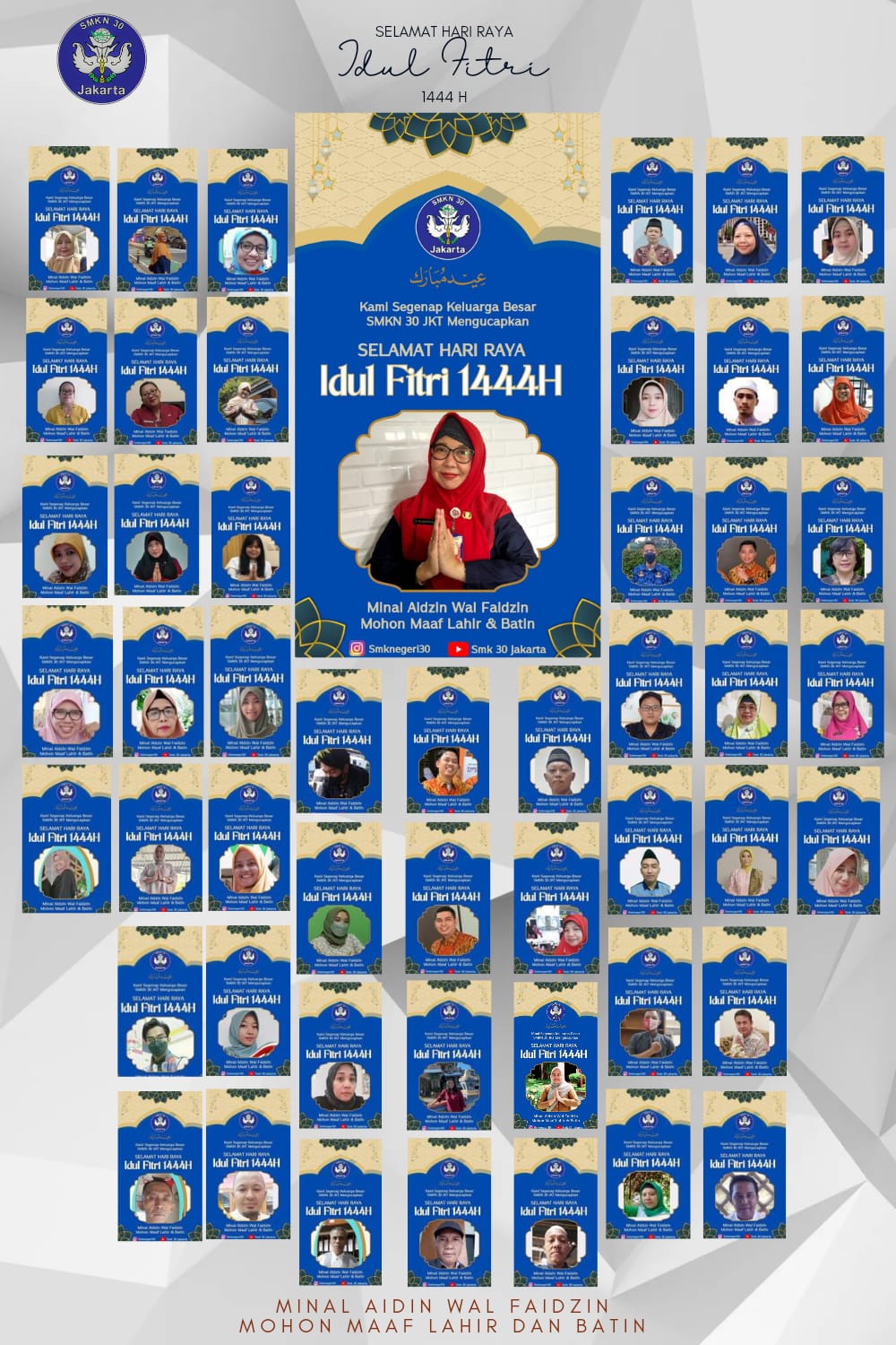 Keluarga Besar SMKN 30 Jakarta mengucapkan Selamat Hari Raya Idul Fitri 1444 H, mohon maaf lahir dan batin. Taqabalallahu minna wa minkum, taqabal yaa karim Semoga kita bisa bertemu dengan Ramadhan di tahun yang akan datang